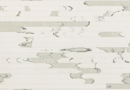 Brittanicca Block features Brittanicca, one of Cambria's signature designs, laid in parallel lanes with unique veining, patterns, and tonality set against a milky white background. Note: Only available in 1cm and 3cm.