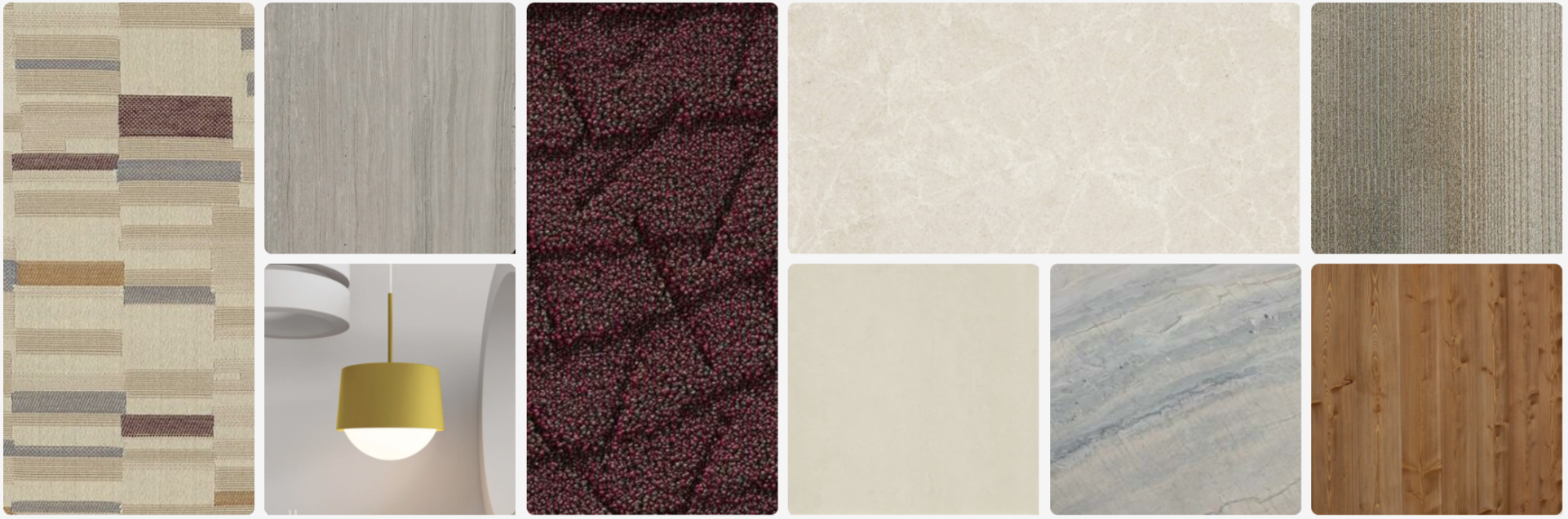This collection shows that by using muted and toned-down shades, you can incorporate lots of color into your design without it overshadowing other elements. The blue, yellow, and maroon colors that are intertwined in the patterned textile are what inspired the color scheme for this collection.
